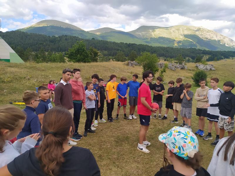 Inoltre, le attività sportive e ludiche sono organizzate come un torneo a squadre in stile Giochi senza Frontiere, in cui ognuno può contribuire non solo con le proprie abilità fisiche, ma anche usando l’inglese in situazioni pratiche e divertenti. Così, ogni prova diventa un’occasione di crescita, favorendo movimento, spirito di squadra e apprendimento concreto della lingua, il tutto in un ambiente sicuro, accogliente e immerso nella natura.
