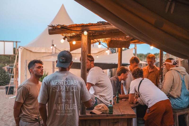 Un campo di surf non è completo senza una bevanda rinfrescante. Ogni giorno alle 16:00 apre il nostro beachbar al campo. Qui ti aspettano bevande ghiacciate, musica estiva e buona compagnia per rilassarti dopo una giornata attiva.