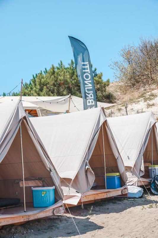 Durante il campo dormirai di base in una bungalow-tent. Le tende si trovano in una glamping a soli 150 metri dalla spiaggia! Grazie alle tende moderne, potrai riposare bene dopo una lunga giornata in acqua. È possibile scegliere tra diverse tipologie di alloggio. Se preferisci un po’ più di lusso, puoi optare per la Glamping o la Glamping Premium.